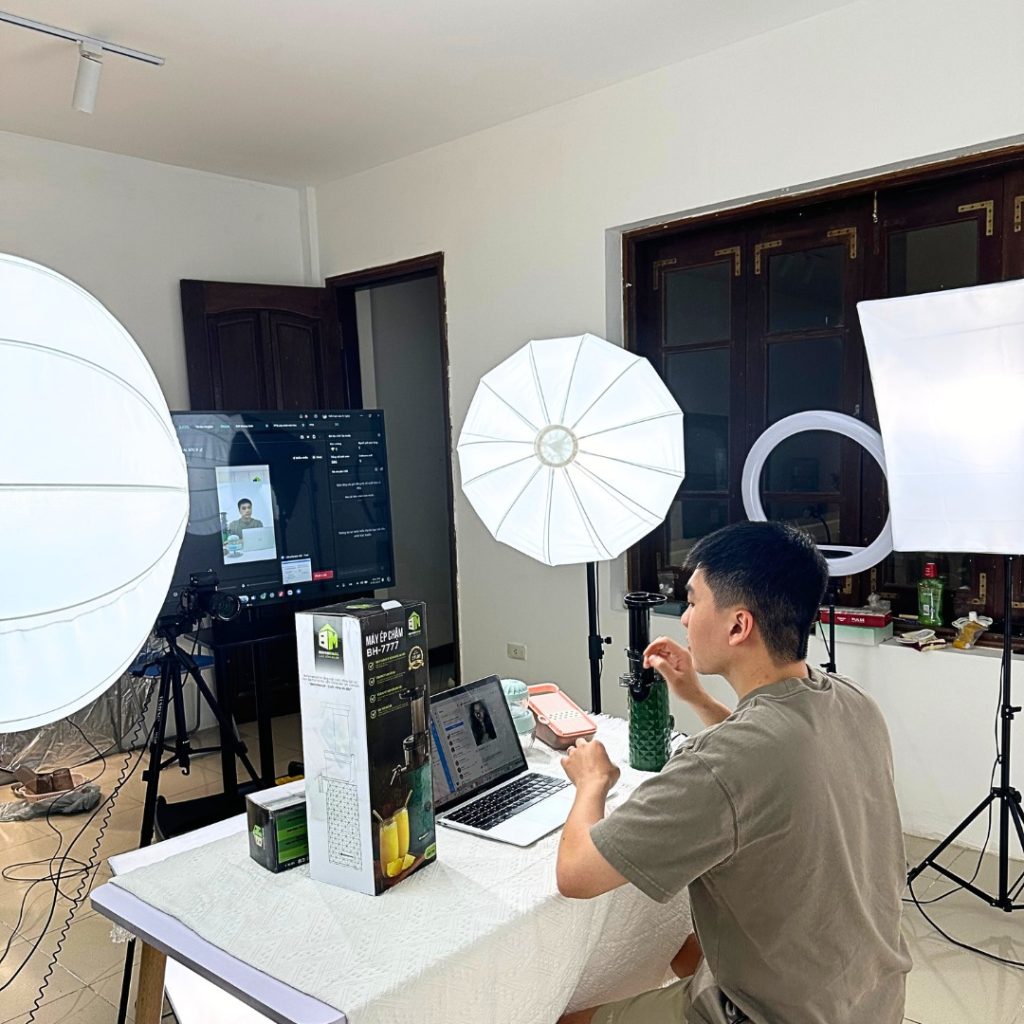 • Không gian livestream được setup chuyên nghiệp